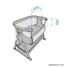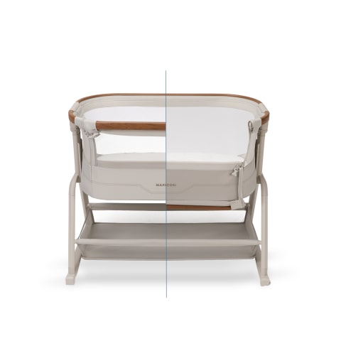 Das Iora Plus Beistellbett verfügt über fünf Höheneinstellungen, damit es sich perfekt an dein Bett anpassen lässt, sowie über eine geneigte Position, um Reflux zu lindern.