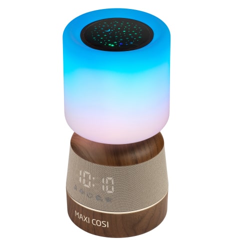 Wächst mit deinem Kind mit – von einem beruhigenden Nachtlicht und Projektor für Babys zu einem Digitalwecker für Kleinkinder, die Neues lernen.