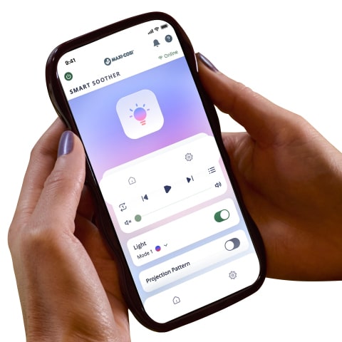 Mit der App, den integrierten Tasten oder über Google Home kannst du das Licht, die Klänge und damit auch den Schlaf deines Kindes von überall aus steuern.